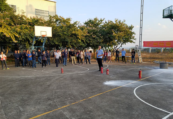 兩位教官,親自示范,帶領(lǐng)大家如何正確使用滅火器。